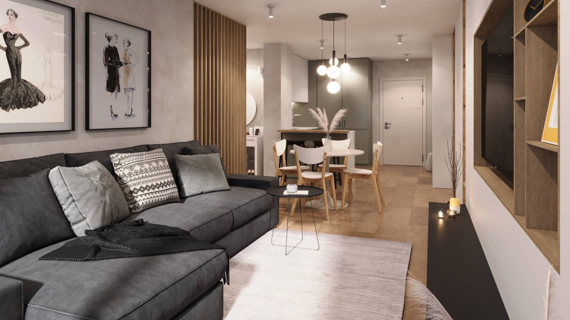 Dieses 2‑Zimmer‑Apartment überzeugt mit einer durchdachten Raumaufteilung und einem halbintegrierten Büro, das es praktisch zu einem 2,5‑Zimmer‑Apartment macht. Der offene Wohn‑ und Essbereich mit integrierter Küche wirkt großzügig und hell, während das separate Schlafzimmer Rückzug und Ruhe ermöglicht. Das kompakte Bad und clevere Stauraumlösungen runden das moderne Wohnkonzept ab. Ideal als Wohneinheit für ein bis zwei Personen, die Wert auf Komfort, Funktionalität und ein durchdachtes Raumgefühl legen.