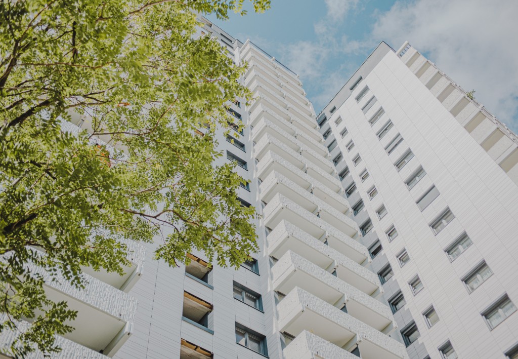 Der Wohnhochhauskomplex The Saxxon in Frankfurt am Main wurde nach Plänen von AS+P Albert Speer + Partner umfassend saniert und revitalisiert. Grundlage des Projekts ist ein Dreiklang aus energetischer, technischer und architektonischer Aufwertung. Das Konzept umfasst auch die Neugestaltung der Eingangsbereiche mit einem zusätzlichen Eingangsbauwerk. Die sanierungsbedürftige und teils asbesthaltige Fassade wurde zurückgebaut und durch eine vorgehängte hinterlüftete Fassade (VHF) aus TONALITY®-Keramik von Leipfinger-Bader ersetzt. Dank des geringen Eigengewichts der Keramikplatten konnte das Gesamtgewicht der Fassade um mehr als 50 Tonnen reduziert werden – ein entscheidender Vorteil für Statik, Nachhaltigkeit und Energieeffizienz. Die neue Keramikfassade ist äußerst robust, unempfindlich, langlebig und wartungsarm. Der Graffitischutz ist in die Keramik integriert und dauerhaft haltbar.